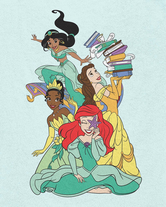 Disney-Top de cuello redondo con estampado de princesas de Disney