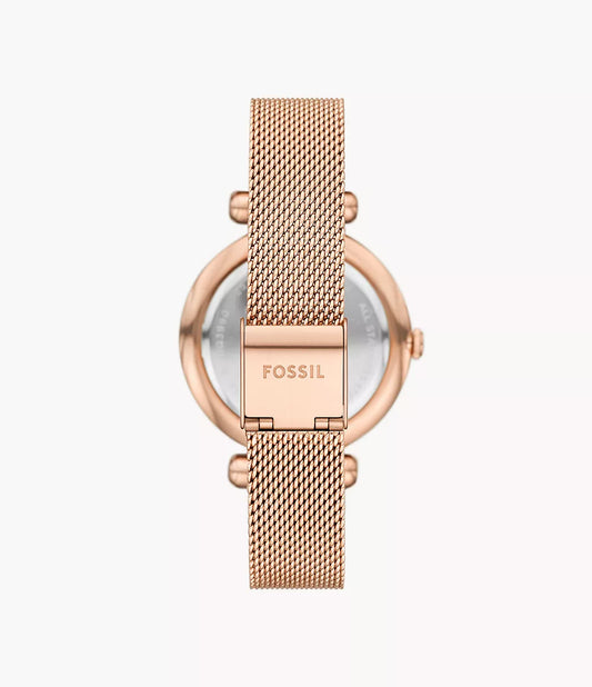 Fossil Tillie Mini Three-Hand Rose Gold-Tone Stainless Steel Mesh Watch