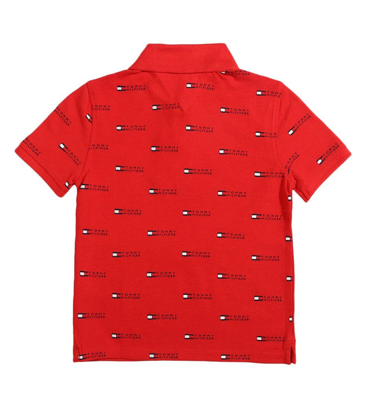 Tommy Hilfiger Kids Blush Red Printed Straight Fit Polo T-Shirt