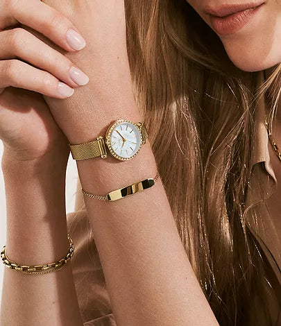 Fossil Tillie Mini Three-Hand Gold-Tone Stainless Steel Mesh Watch