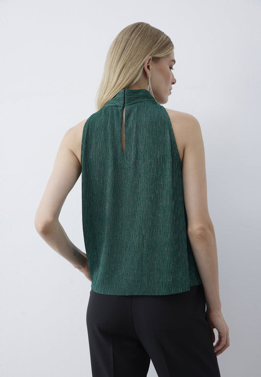 Nine West sleeveless Back Silver Metallic Ruffle Shimmer Flowy Top Blouse