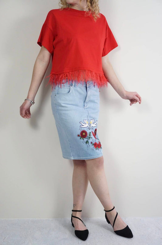 Forcynthia Feather-Trimmed Cotton-Jersey T-Shirt
