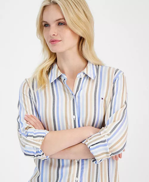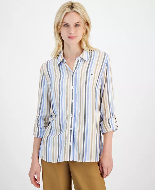 Tommy Hilfiger Women's Stern Striped Roll-Tab Shirt
